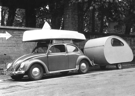 This is the era of the canoe on top of the Volkswagen and the first communist cardboard car.