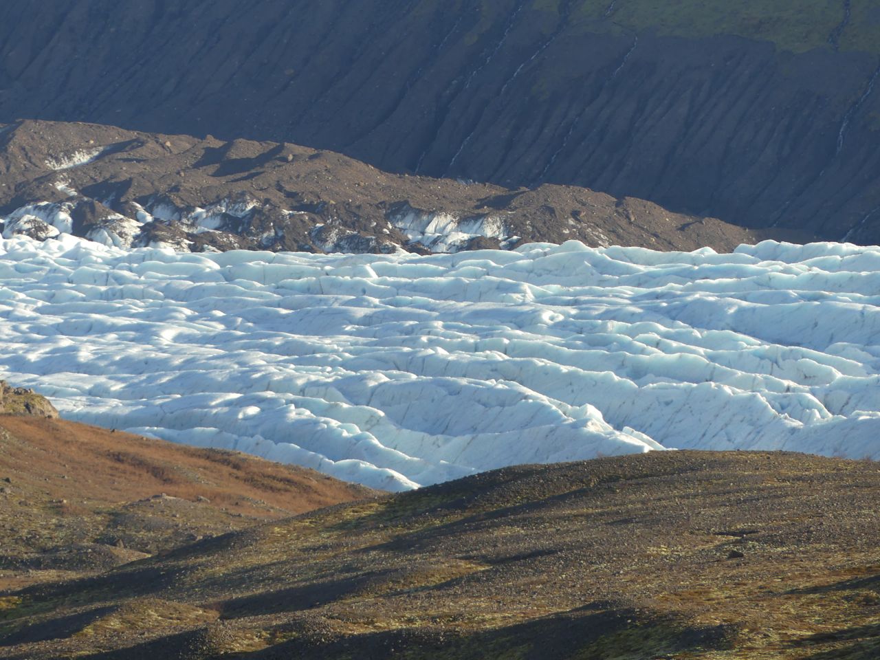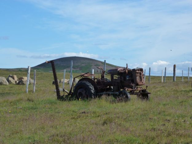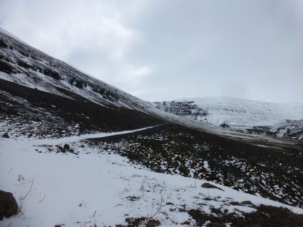 Now, a prey species, such as a reindeer, would likely walk along the ridge line, to maintain a sightline the whole way up. Humans prefer to remain hidden. If this were a land with predators, though, such as bear or wolves, humans would use their strong eyesight to advantage, allowing themselves to be hidden not by a hill but by openness and distance and the mind that can work them to advantage. It’s not that way when you put them inside a dump truck, such as here near Kikjubærjarklaustur: