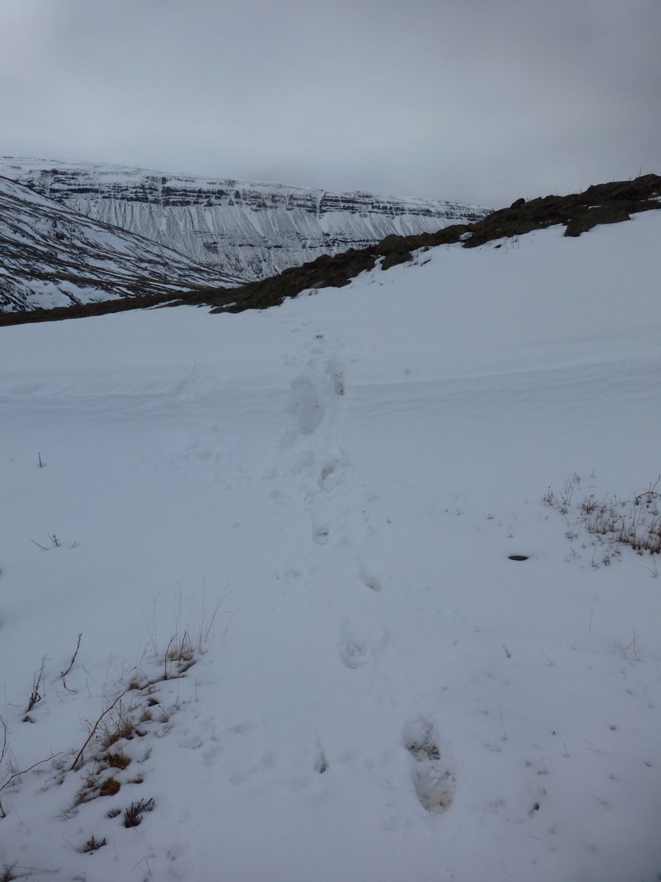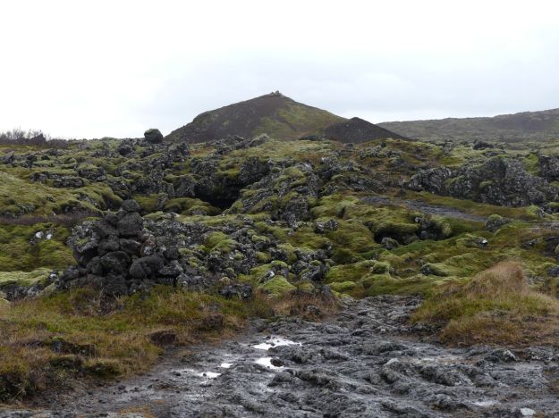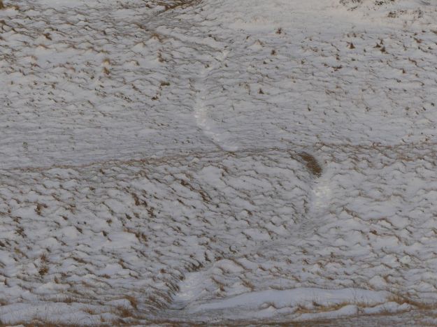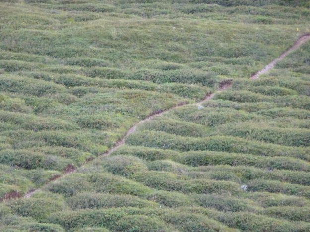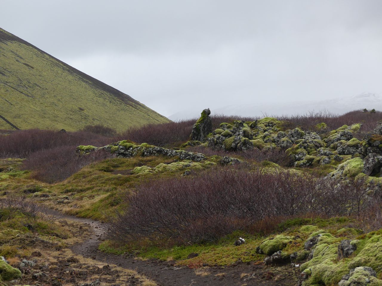 Like sheep, humans leave trails which express the shape of their bodies. Note how this trail leads to the summit of this hill (near Hveragerði), where humans like to perch to have an unimpeded view, but it does not quite lead there directly. It avoids the steepest bits, where humans could topple backwards, given how unbalanced the poor beasts are.