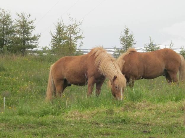 Icelandic horses came over with the first settlers. They know a thing or two. Here in Eiðar, you can see the technique for getting at the good stuff: you can strrrrrrretch that border, but you never, technically, really, for honest and for true, cross the line.