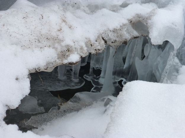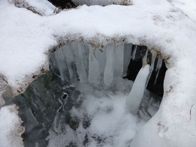 Sinkholes! Worth a peek. All this ice is hollow like this. Tricky.