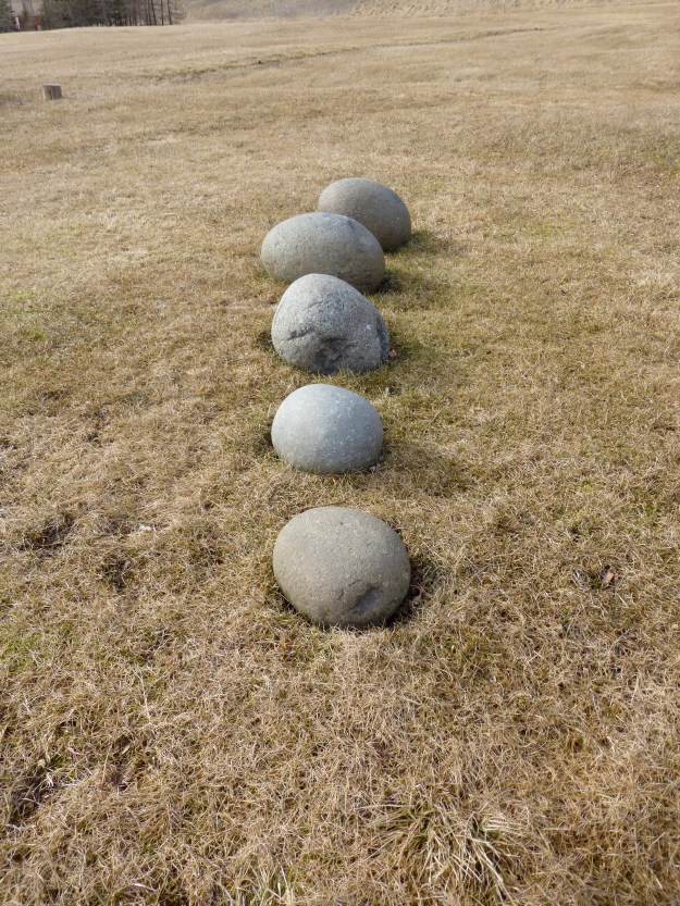 In Iceland, so the story goes, you knew you were old enough to go fishing in a small boat on the big grey sea by how heavy of a stone you could lift. A pile of stones was much like a university examination is today. Here is the examination set at Skriðuklaustur, more for fun than anything.