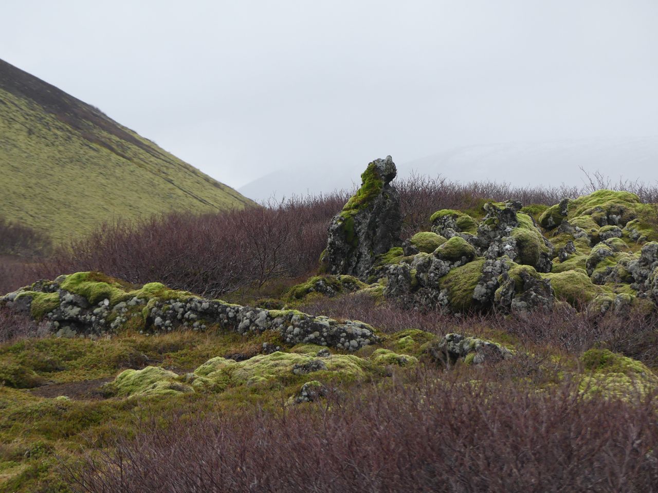 At Mosfellsbær, though, it’s pretty obvious that elfishness isn’t just a matter of smallish rocks and lichens. There’s a sense of the power of landscape that is much larger than that. The land is a body, obviously, although not a human one, and it has points of focus, or life, that are very intense.