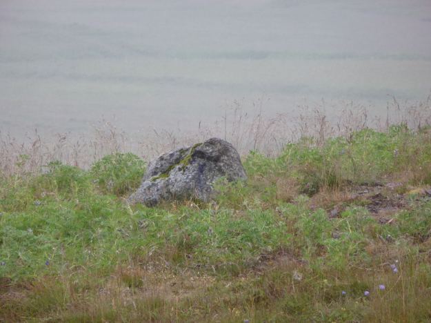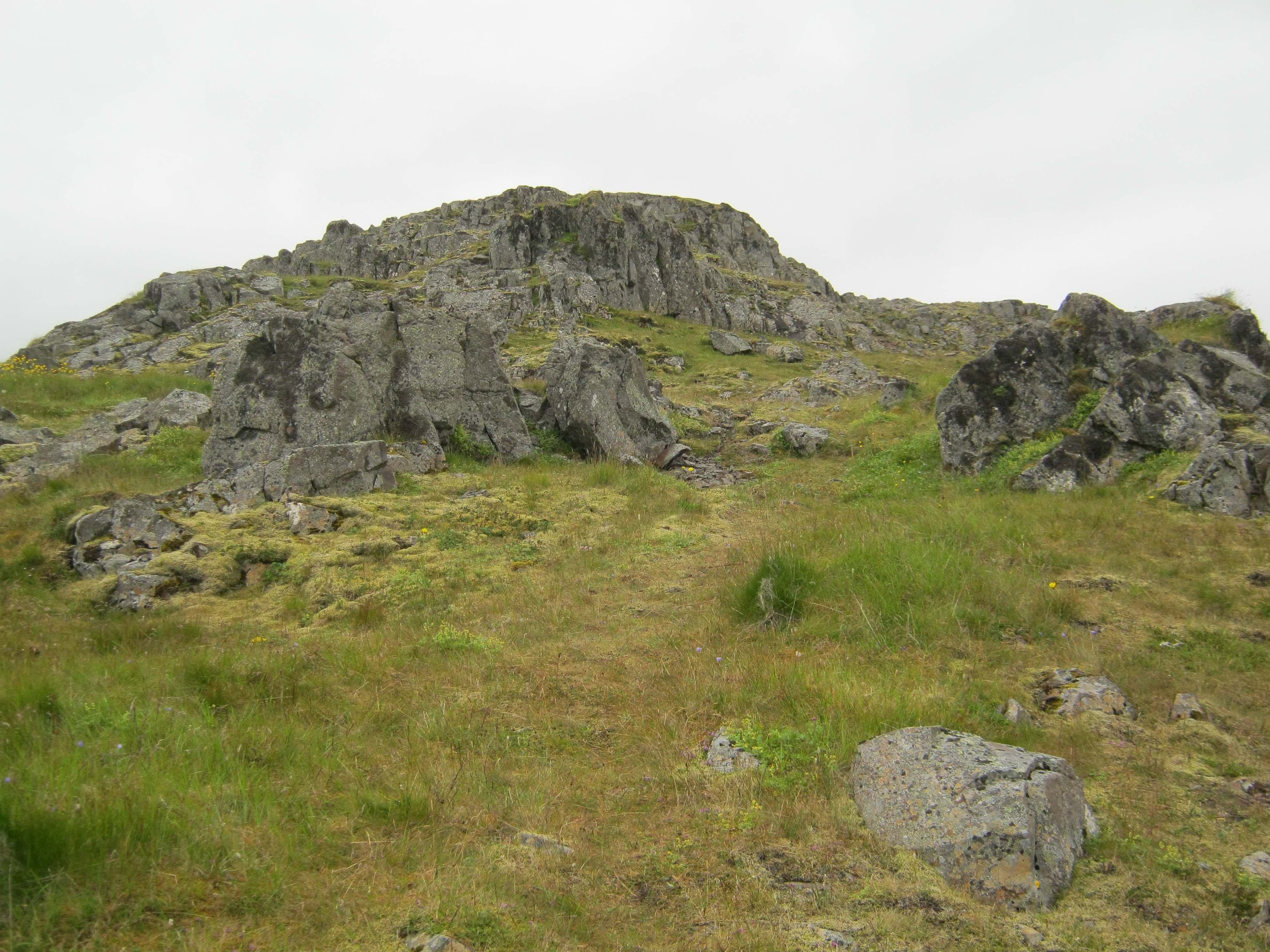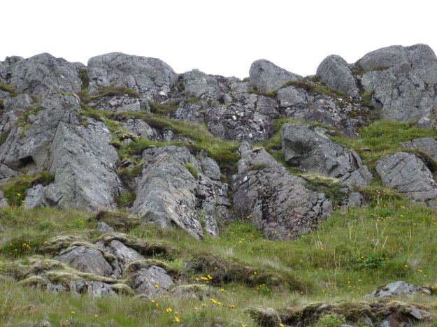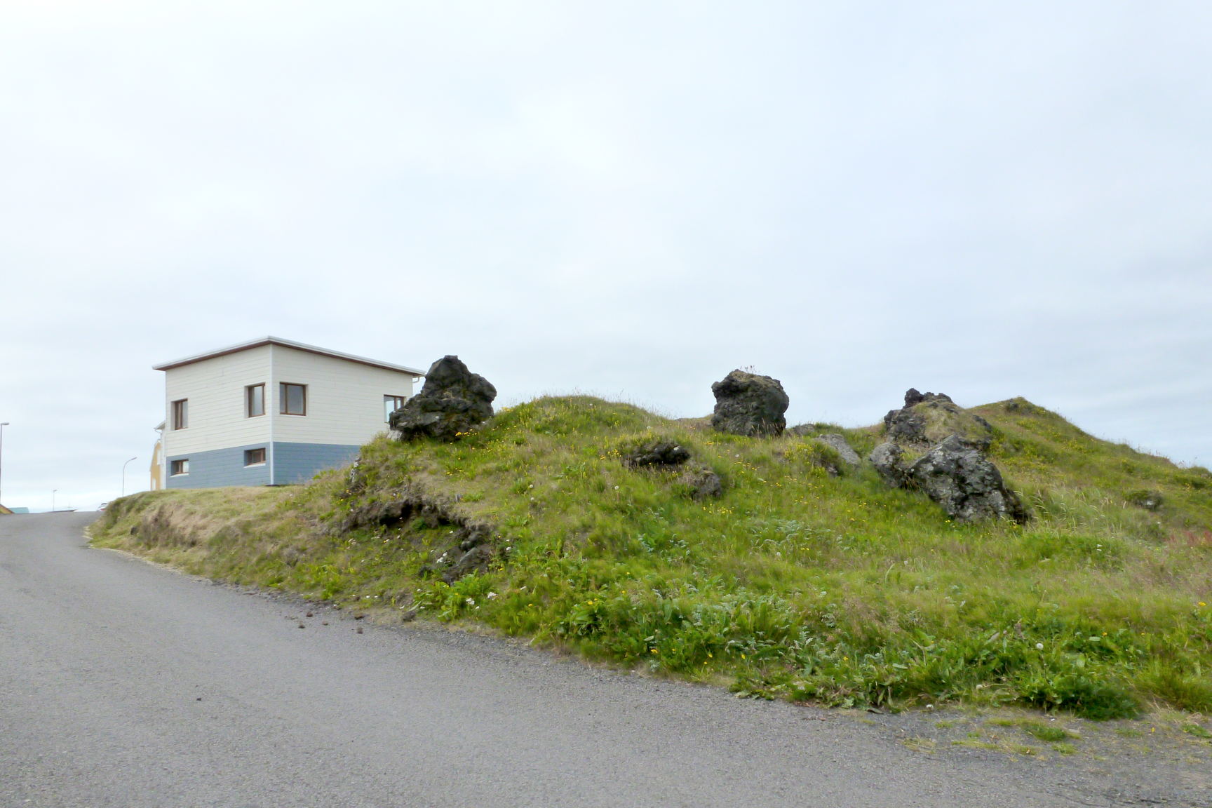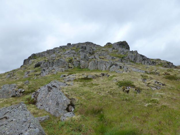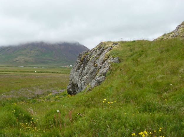 Note that it looks a lot like a turf house, with a chimney. Small versions are created by birds, who perch on top of hillocks, Icelanders will quickly point out these days, shit what they have to, and fertilize the grass, which makes a little cap for the hill. Well, maybe. Still, rocks at old turf house sites are not uncommon.