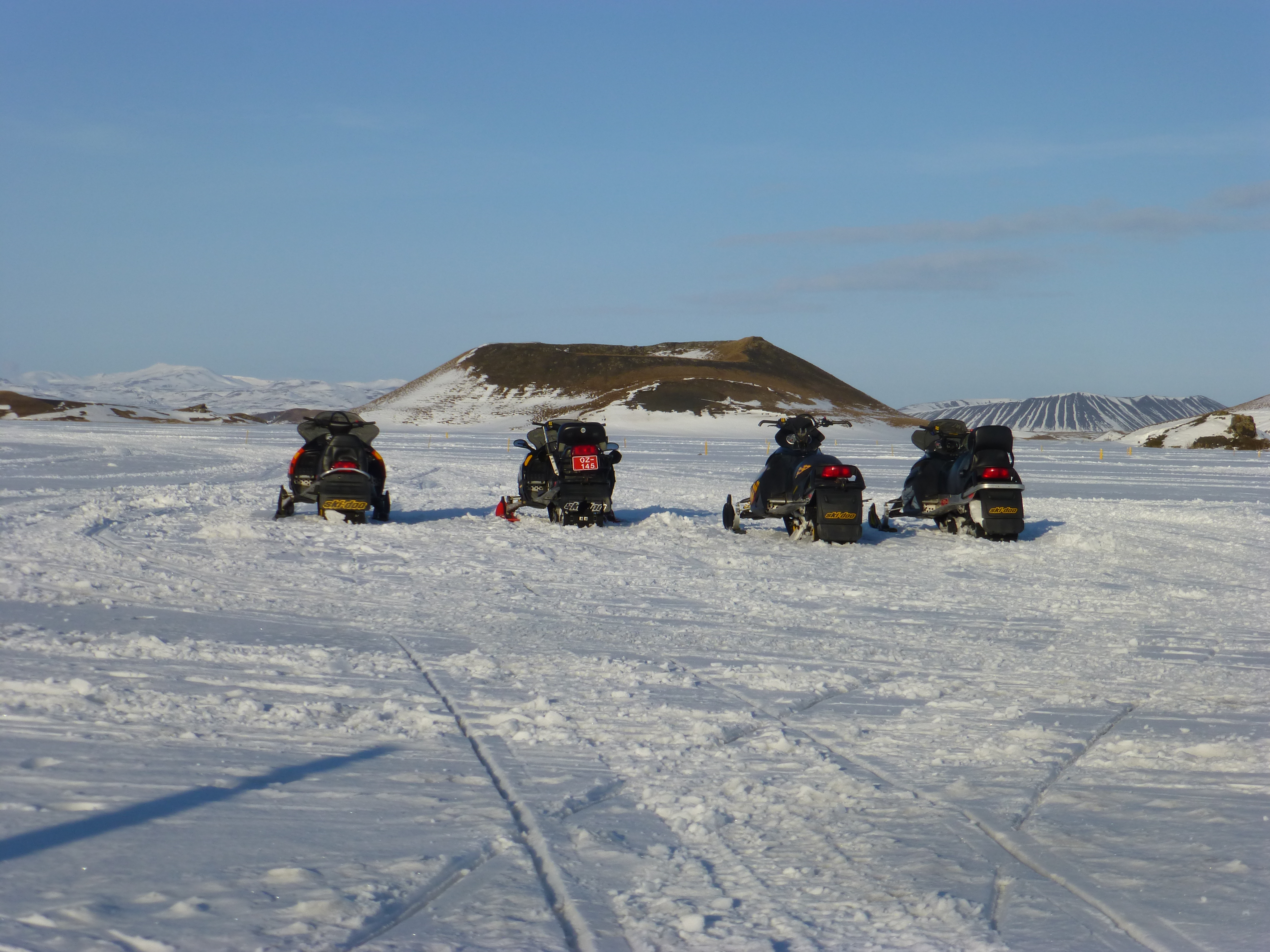 You can see her on the right in snowmobile season below. Oh, those humans!