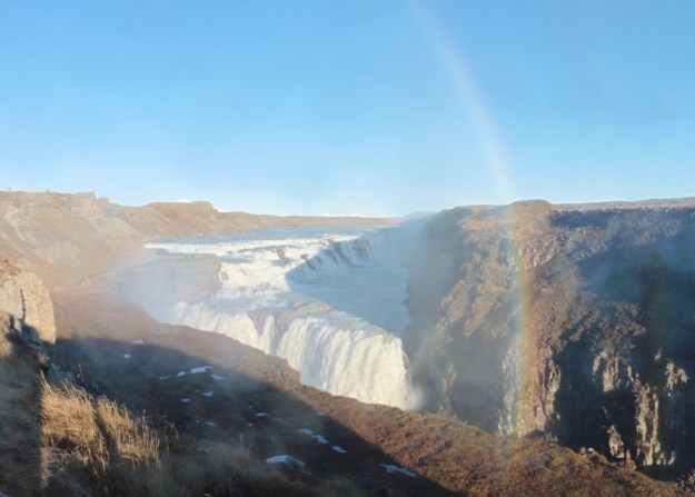 You are virtually promised to see a rainbow at Gulfoss. Don’t try for the pot of gold, though. It’s dangerous down there where the river disappears into the earth. Fairyland, they call that.