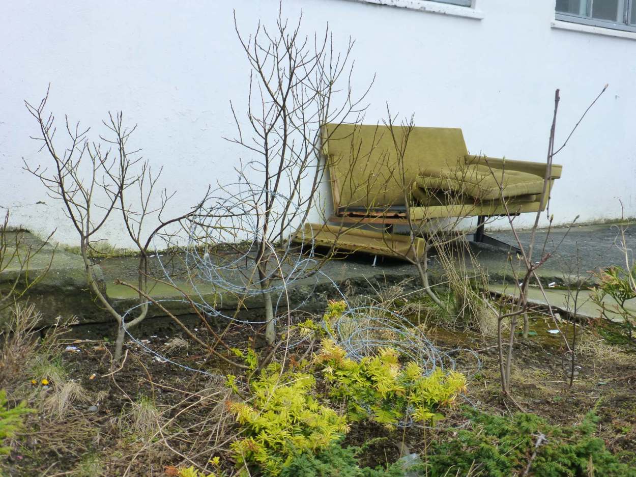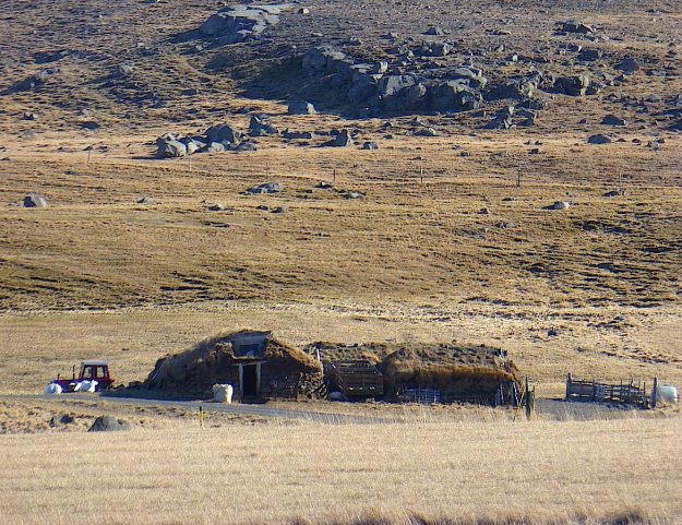 In the 1950s onward, the Icelandic government gave away trees, as part of a nationalist program of rebuilding the eroded landscapes of the country. Out of the same impulse as Gunnar, people planted them on the sites of their former turf houses, leaving the hills, the intended recipients of the trees, bare.  The government keeps a few turf houses as museums: