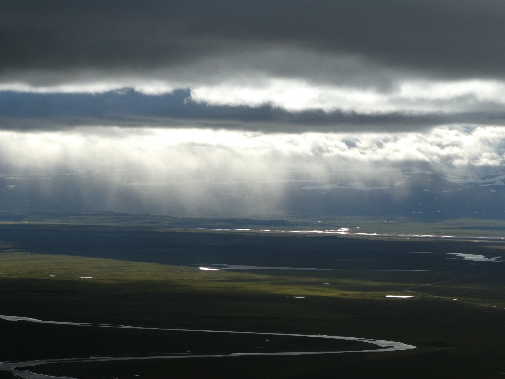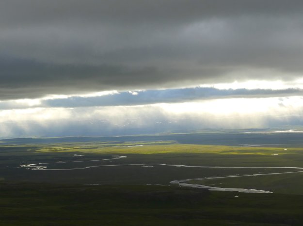 … is a comfortable form of coexistence as well, but it might not. As an example, just consider that the hydroelectric dam in the Highlands that powers the Alcoa plant at Sómastaðagerði above required the diversion of Jöklá into the Jökullsá, and the subsequent combination of both rivers on the Heraðssandur (below) to prevent flooding, all funded by the industrial project but no doubt predating it by many centuries.