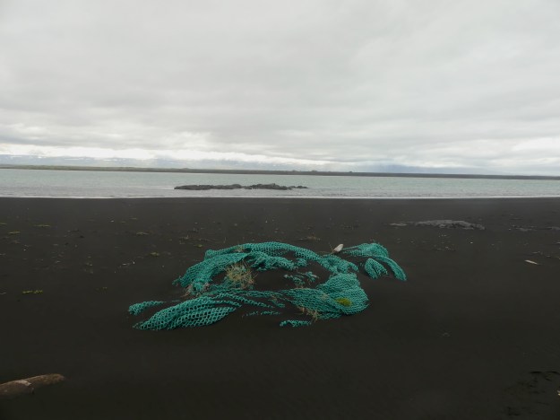 Whether the beach is really black is questionable, but, still, it’s lovely. The river has built an estuary over the last couple years, and seals have moved in. Note how the human story now dominates: the image has directionality and an object, which is more dominant than Iceland and the Atlantic themselves. It’s not just a matter of a camera’s point of view. Even if we sweep up an even larger pile of fishing garbage on the Sellfljót…