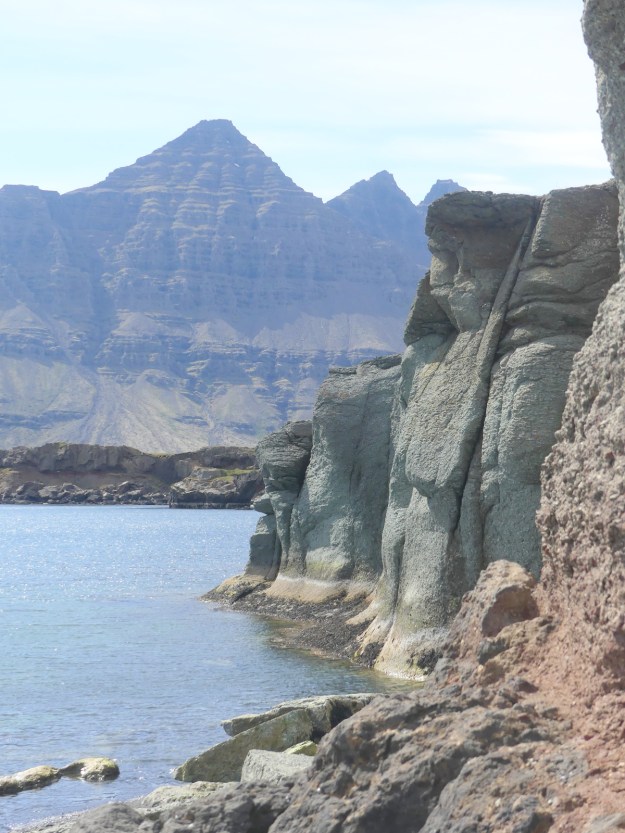 The Green Spirit Stone of East Iceland Leave a reply The view from Blábjörg. You don’t see green lava everyday. It looks like it came from the bottom of the sea, but it came from deeper, flowed across the land… Notice the Campers Rushing Past to See All of Iceland in Three Days … and into the sea, which has been talking with it ever since. The thing about land and sea is they don’t rush past. Share this: Click to share on X (Opens in new window) X Click to share on Facebook (Opens in new window) Facebook Like Loading... Related