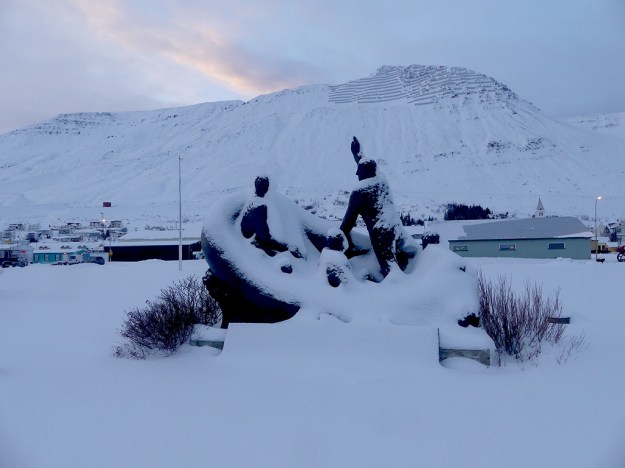 When Gunnar wrote the shore of life in 1915 and noted the land is ringed with a deadly surf, that one must cross, either for fish or for the world and back home again for shelter, I think he had the eiðars in mind. Look at them here in Neskaupstaðir, fishing with their chicks in the swells. Some of the chicks get tossed a metre into the air, and then dragged down a metre under the waves.