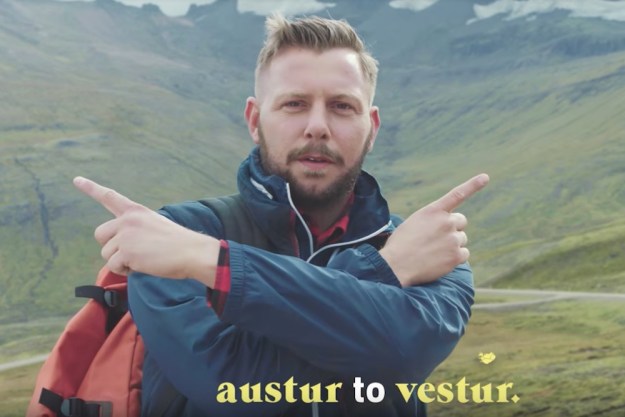 That’s the fun part. Here’s the next window in the store on Laugavegur. Same stricken climber dude, hanging on now without his tree, and a woman up front in a tank top AND a climbing jacket, so, like ready for a night on the town, but look at the background:
