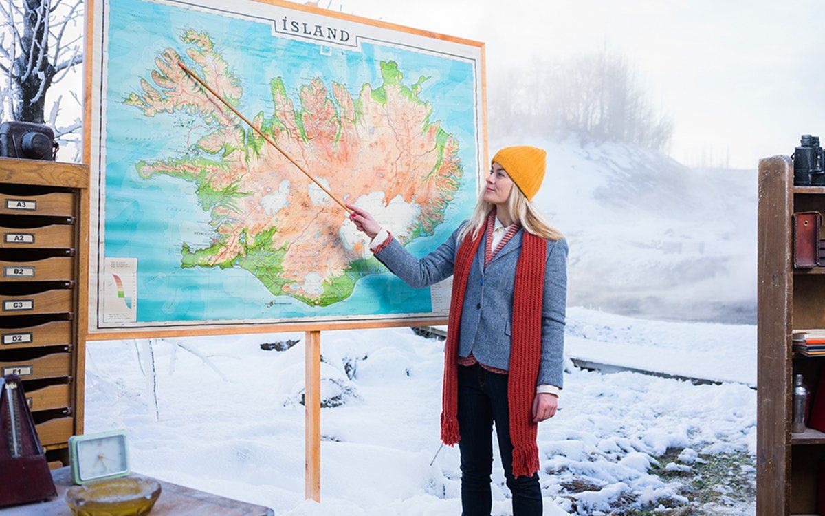 That’s the fun part. Here’s the next window in the store on Laugavegur. Same stricken climber dude, hanging on now without his tree, and a woman up front in a tank top AND a climbing jacket, so, like ready for a night on the town, but look at the background: