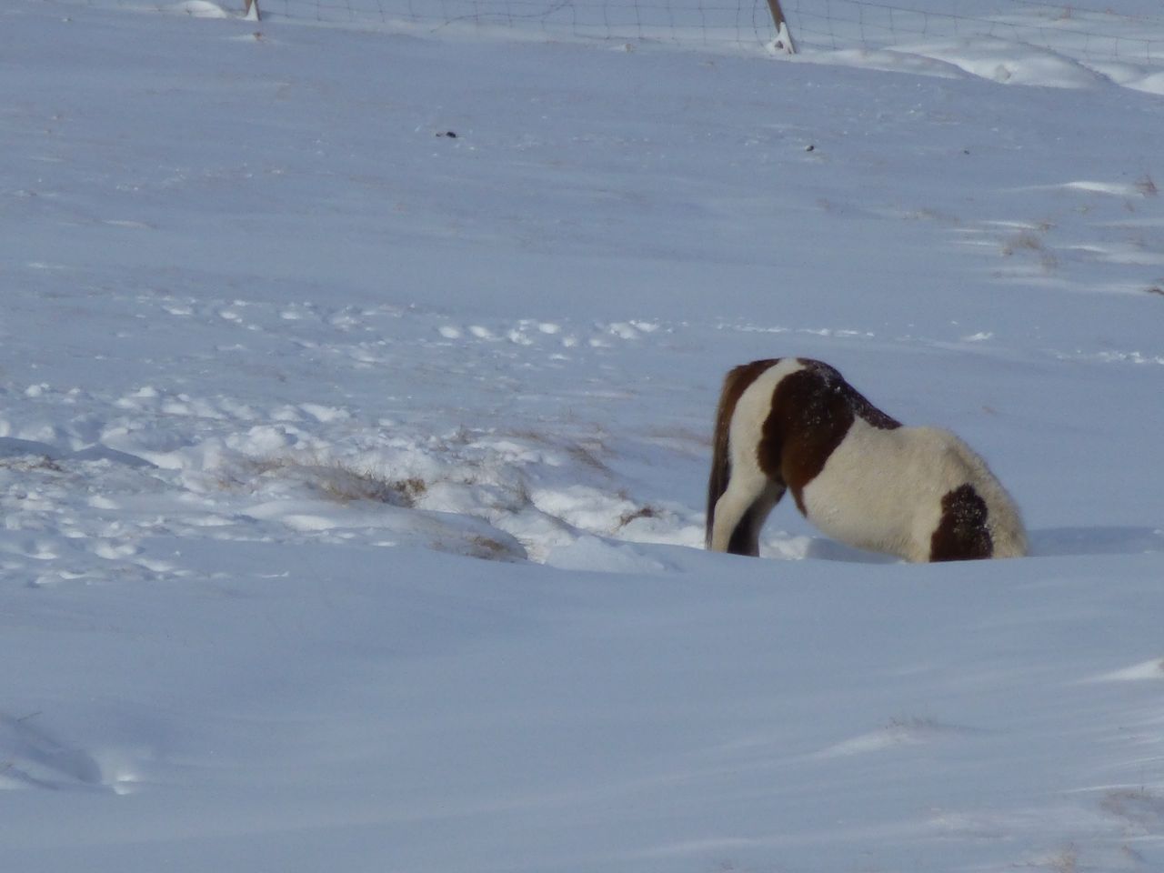 But, wait. It’s not that simple. Look at those drifts! You’ll throw a hoof. And then what? Drifts for you all March long, or forever. Brrr.