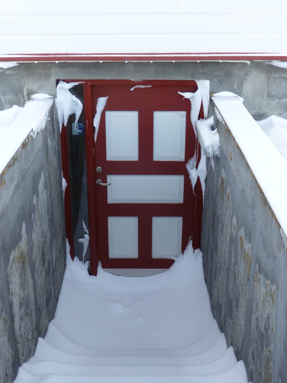 Ah, the basement and community hall are drifted in. Best go upstairs.
