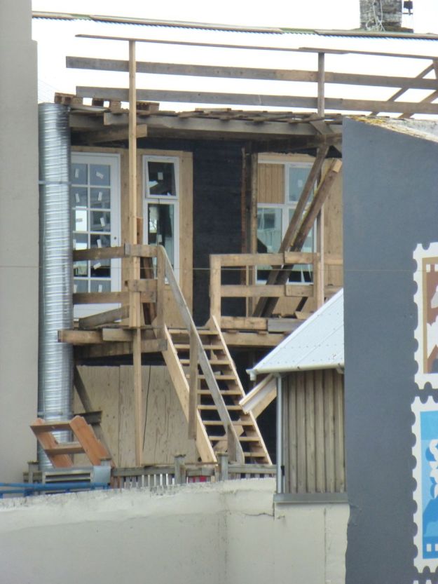 No. Not Iron Iceland. Ironic. If it were iron Iceland, they wouldn’t build so many home-made scaffolds out of lumber. They’d use steel pipe, as they do in Canada, a lumber country. In Iceland, not a lumber country, they use precious lumber.