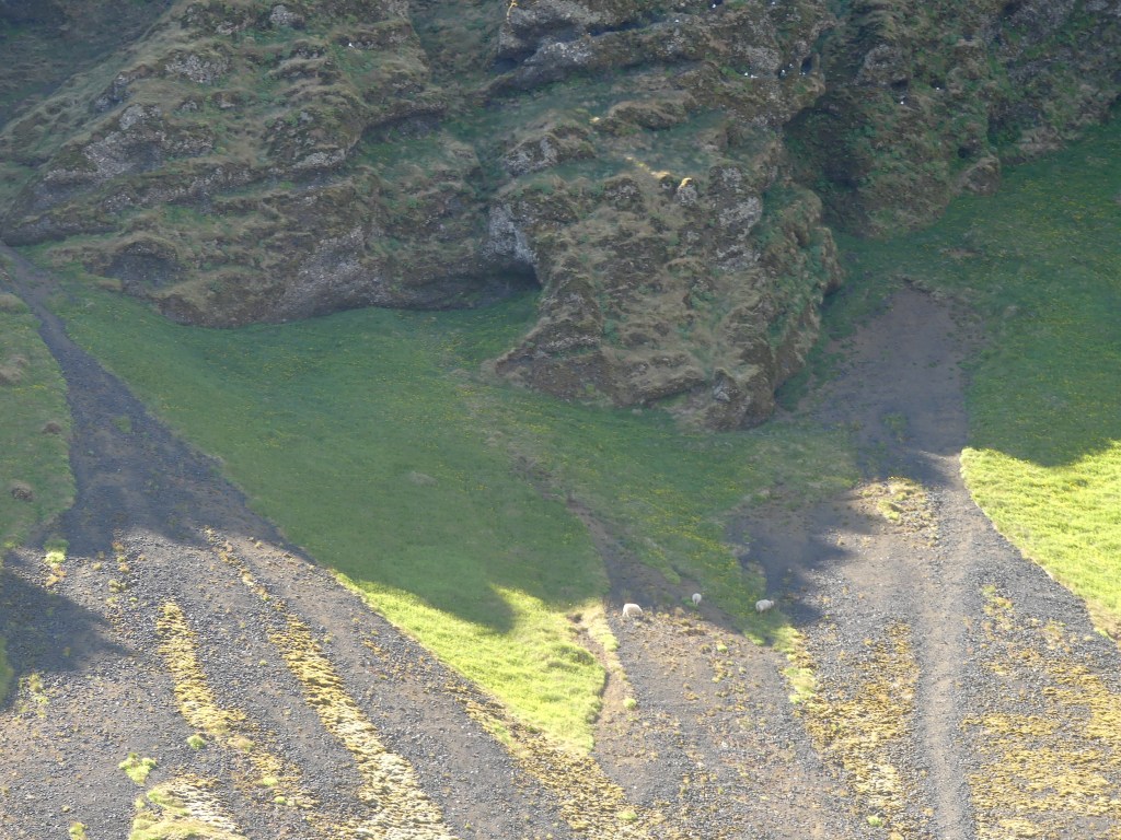 But what’s that on the mountain? A dragon? And isn’t the sod collapsing over the cliff into sea, its wings? And aren’t there dragon shapes a-plenty, in the wet-dry patterning of the cliff? You tell me. I just know that walking through this fjord as a dragon story makes every relationship significant, in the way every word and sound in poetry means more than the poem’s sense.