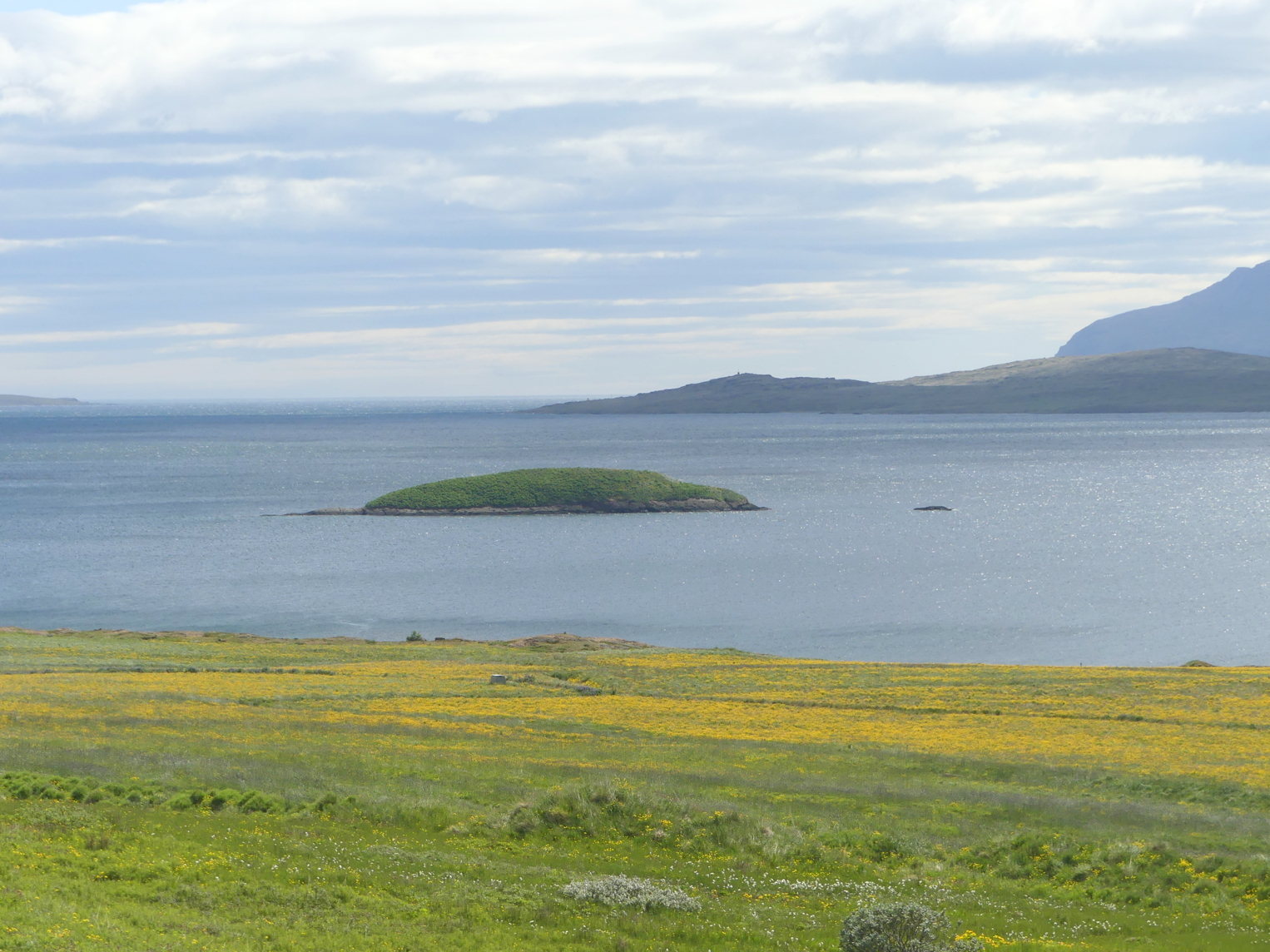 It’s always this way. It’s not that there were elves here before humans. They came along in human heads, but they needed a place, and so houses (and churches) were allotted for them too, which means that the humans had to choose well. Here’s the view out over the human camp to the sea.