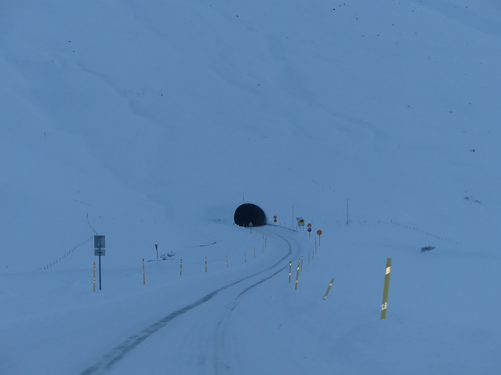 In comparison, the main roads go through tunnels, which is a very fine thing because the roads themselves are skating rinks. And the light is blue, which, yes, is also fun.