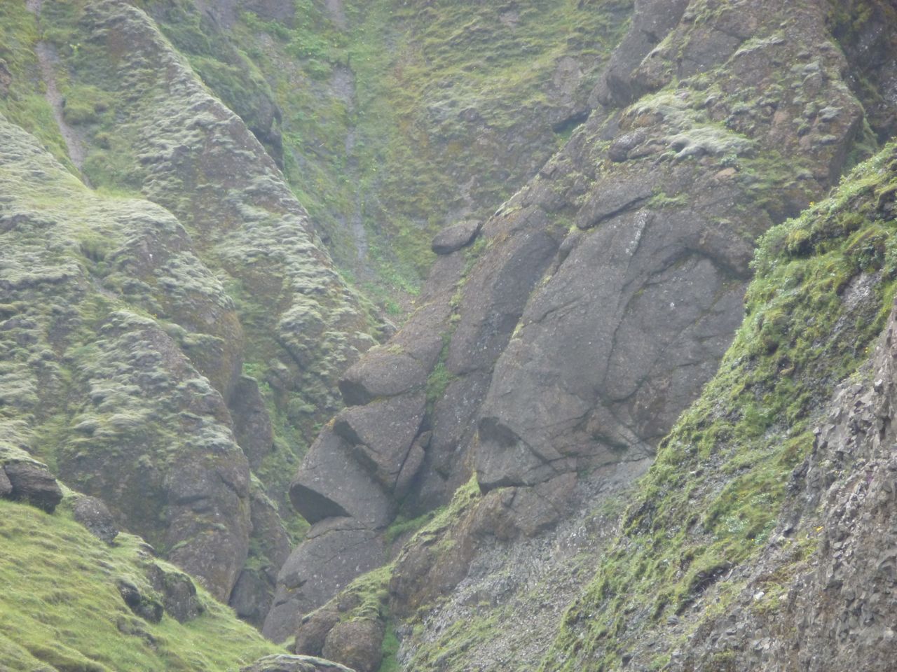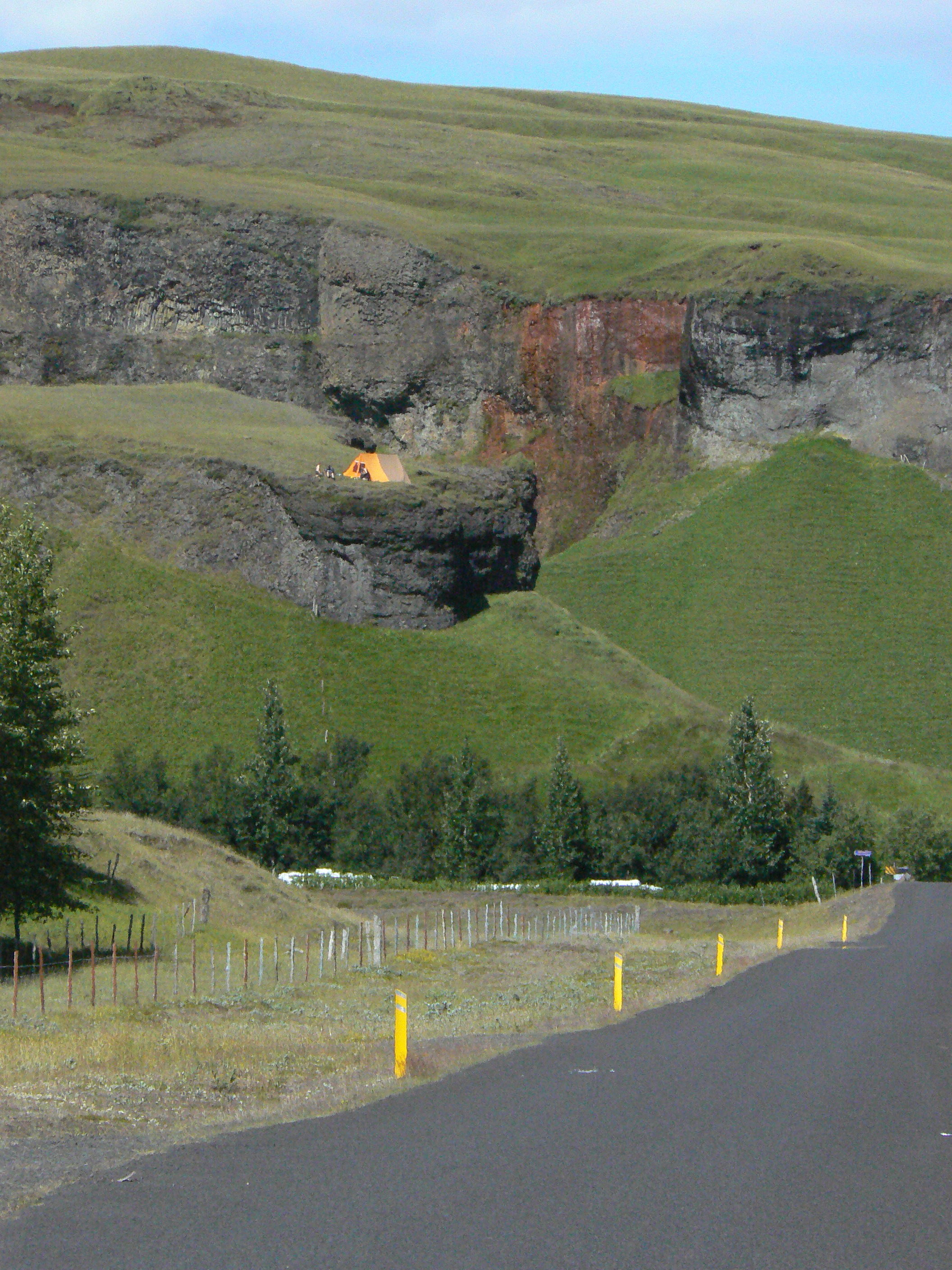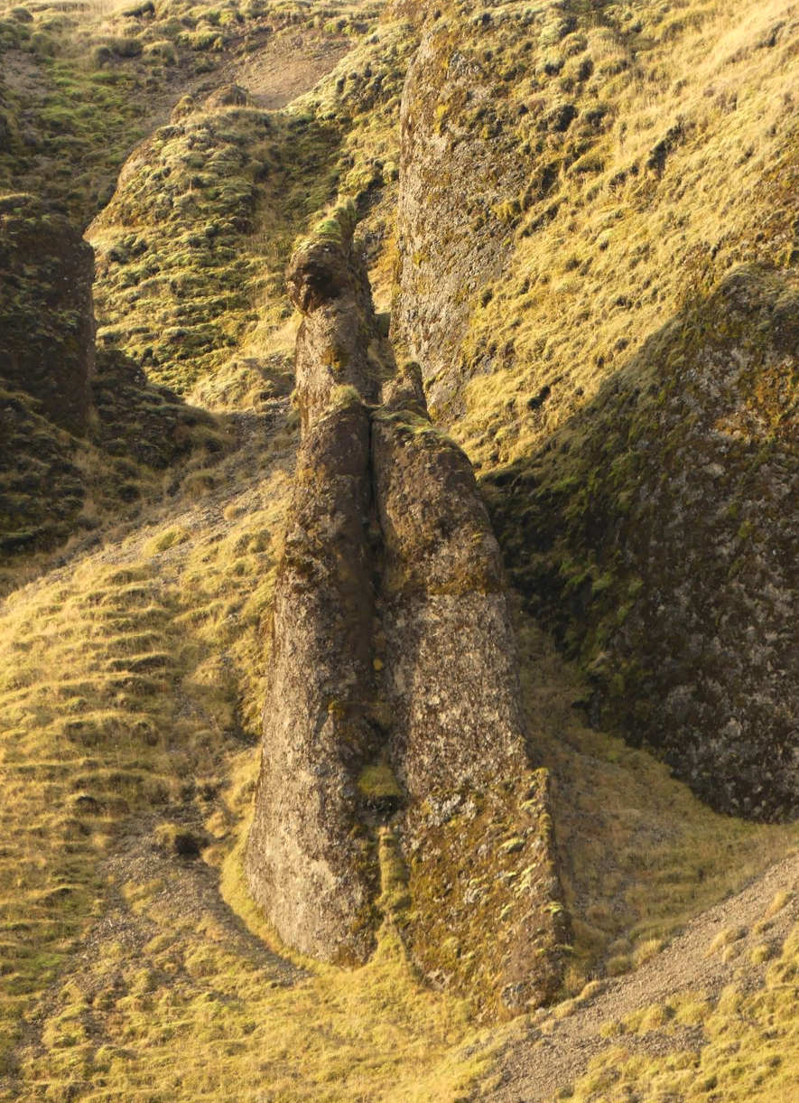 … that flows down the hill separately, splits around the rock (fine Christian symbolism there) and then unites as one — before flowing through the cloister. We’ll never know, but we do know that the young women were set to work embroidering cloth, and that Icelandic cloth was the best in the world. It would be a surprise if the amorous priests missed out on the symbolism, or didn’t point it out to the girls left in their charge. At any rate, the falls are beautiful, and richer for a history older than Iceland, even though the lava took all the best land away, some say to punish those lascivious priests.