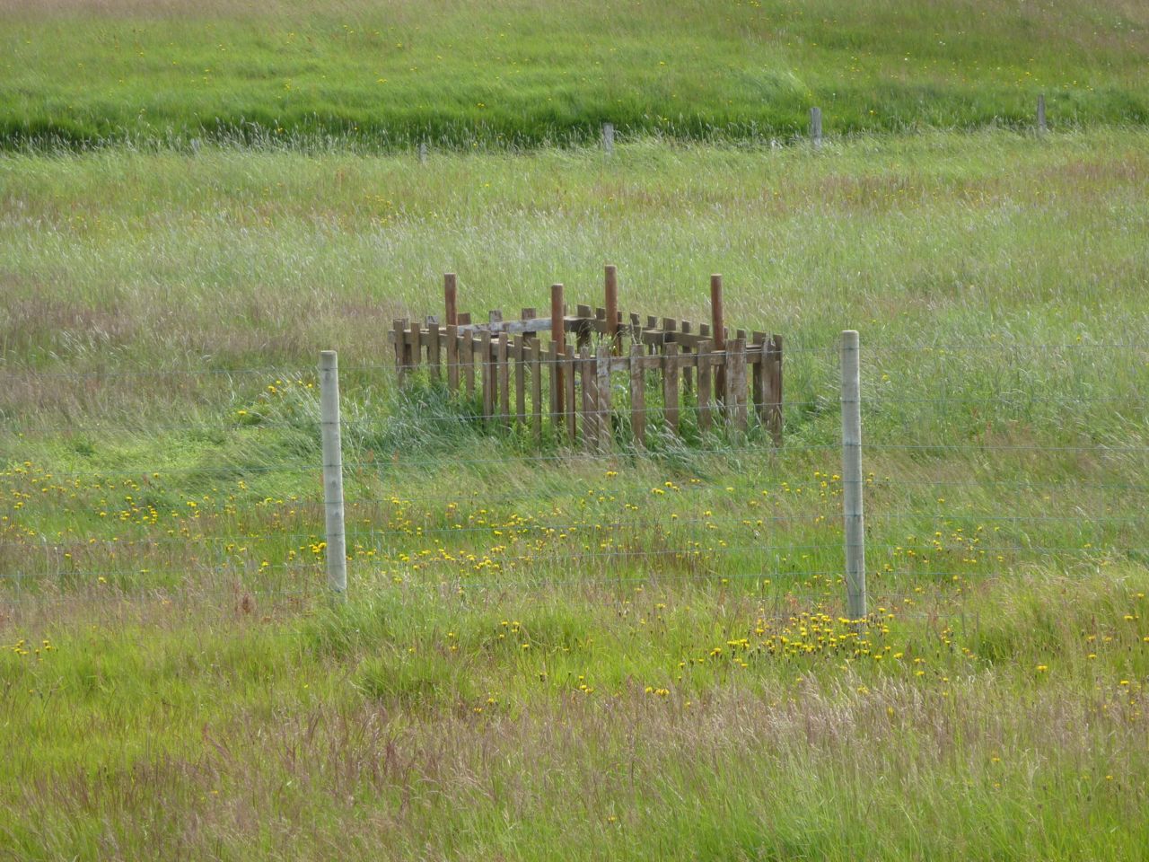 That’s not a fence, just posts to keep the people from falling over into the grass. It’s a mystery!