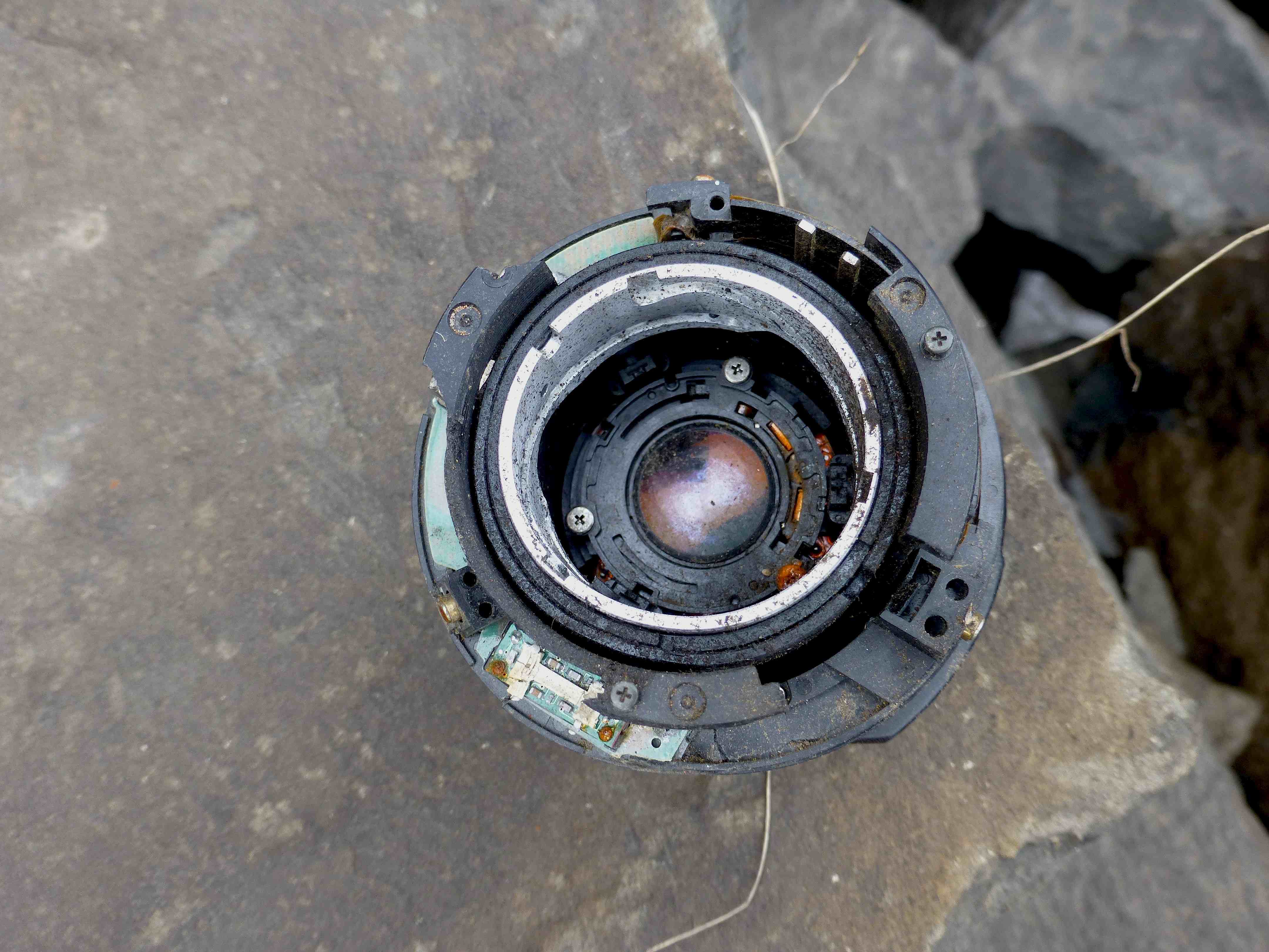 If I’m right, you dropped the lens from about here (see the x in the upper right?) …