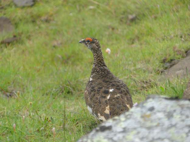 On the Lower Stapavik Trail, the ptarmigan like to hang out right on the trail edge, right on the edge of the river, among the logs, where the sun gets warm and life is good.