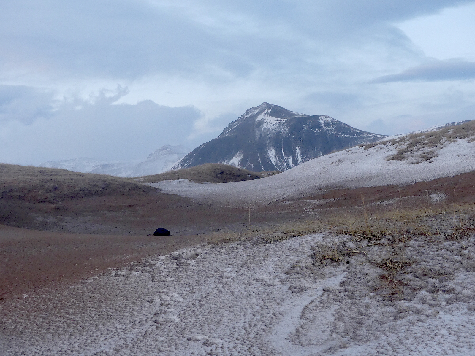 When the wind hits 33 metres per second at the Buðahraun, the only shelter is down among the dunes, but even there you have to put your back to it to make an image, as the sand driven into the snow hits you like a blast from a shotgun. It’s better to take that in the back.
