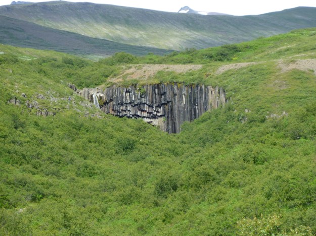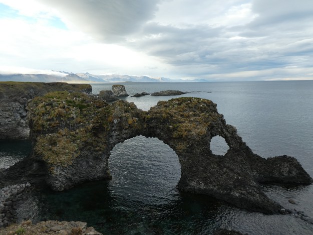 Note that the light is off in the distance, over Midhúsavatn and Knarrartunga, but with its darkness Gatklettur hides it.