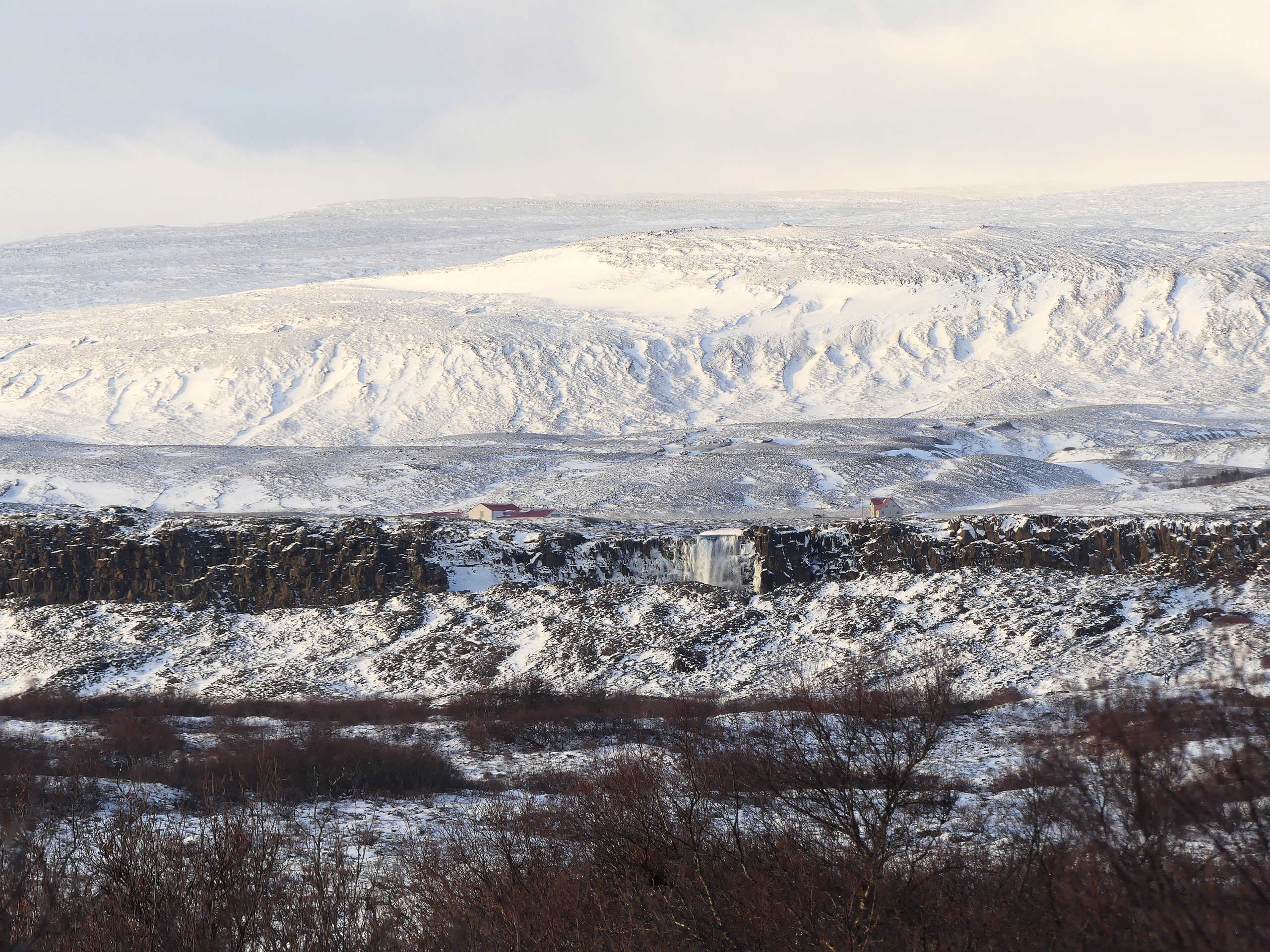 This is Öxarárfoss, diverted a thousand years ago off of  the Kerlingar Lava Field to bring water to the Alþing, or parliament, at þingvellir, the meeting wall.