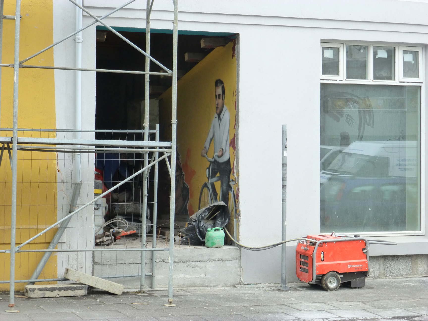 I have no idea how he got out of the cab, up over the hydraulic arms, over the bucket, and up there, but he did. After all, for half of every year his sheep have to live in there, while the mountains and the sea do their thing outside. Curious? I hope so. There’s a link to the right of this page where you can order this book. While you’re waiting for it to arrive, here’s the south wall of Snæfellsjökull…